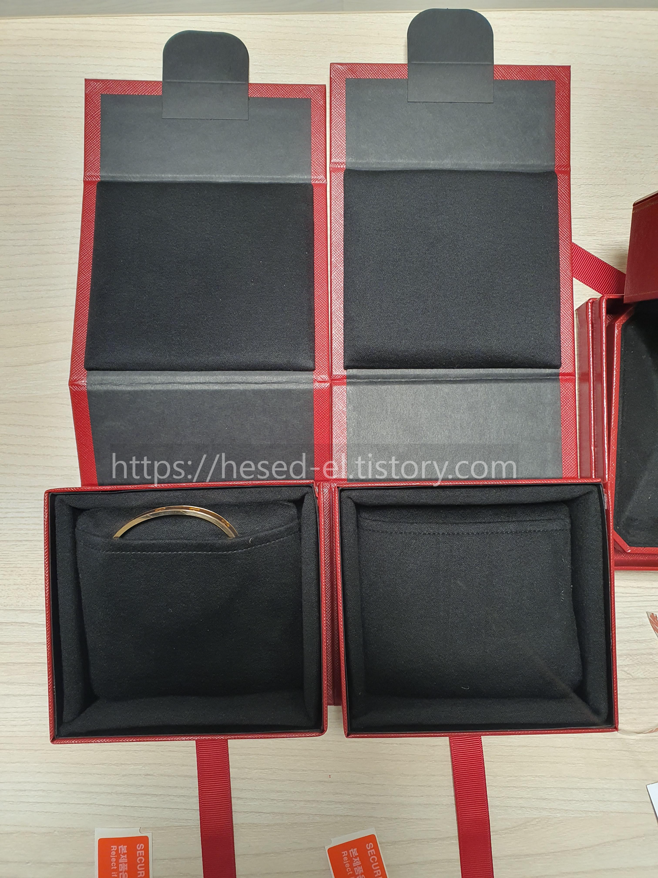 왼쪽 상자에는 러브팔찌 오리지널을 넣었고 오른쪽 상자에는 러브팔찌1p다이아 반지를 넣었다.