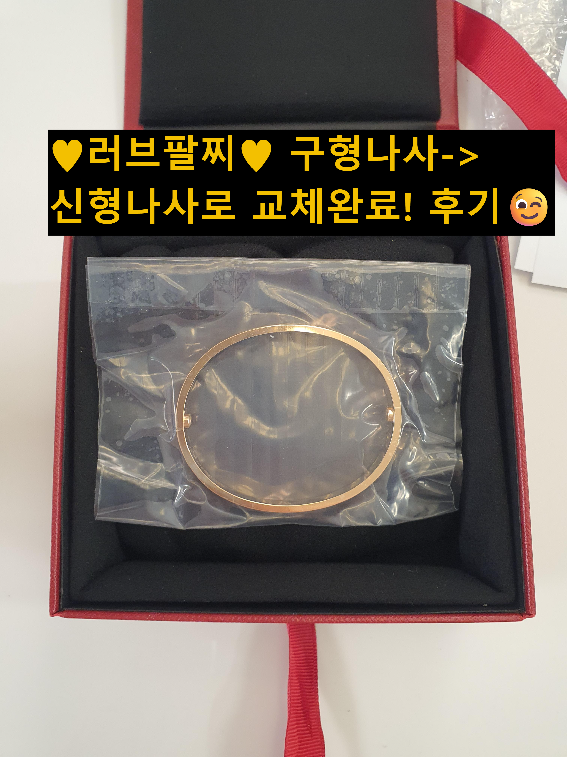 반만 접었다 펴는 힌지 형식의 제품으로 리뉴얼 되었고, 더 수월하게 착용할 수 있도록 한쪽 나사만 조이면 되는 힌지 형식 팔찌의 선호도가 높아질 거라는 예상에 구형 나사 러브팔찌를 신형나사로 교체해야겠다는 생각이 들었다.