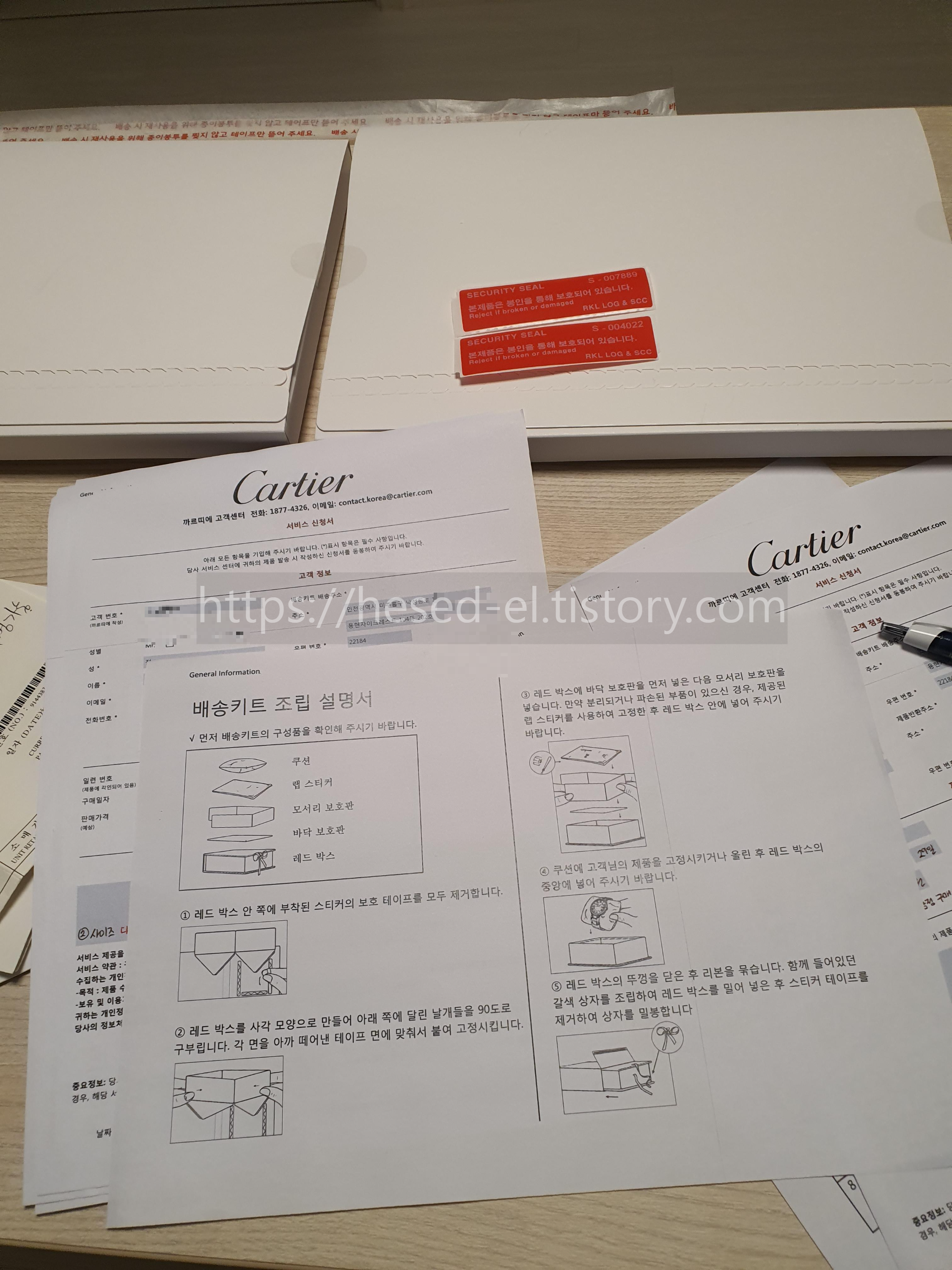 까르띠에를 상징하는 빨간색의 조립 상자가 들어있다. 이걸 무료로 보내준다니 역시 명품 중의 명품다운 최고의 서비스다!