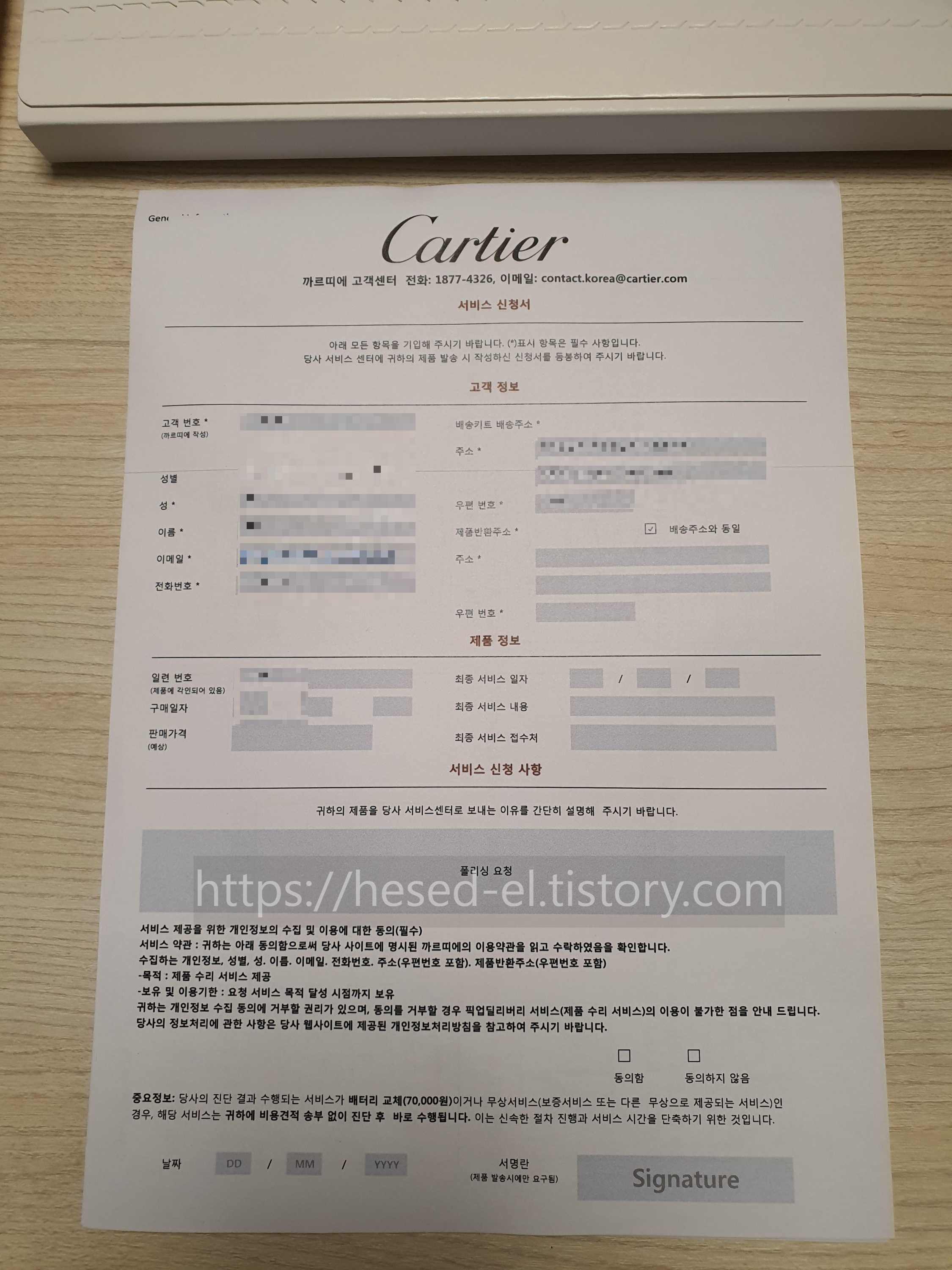 📦 까르띠에 A/S 택배 접수 방법