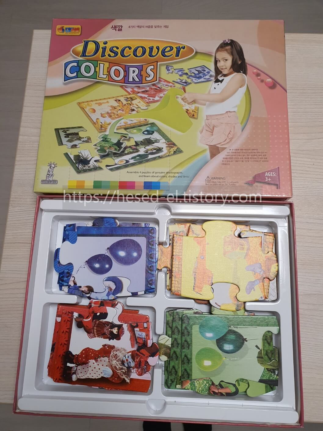 활동 목표: 4가지(빨강, 파랑, 노랑, 초록) 색으로 구성된 퍼즐을 맞추면서 분류 및 전체와 부분의 개념이 발달하며 눈과 손의 협응능력, 소근육 발달이 향상된다. 더불어 어휘력과 지식이 풍부해진다.