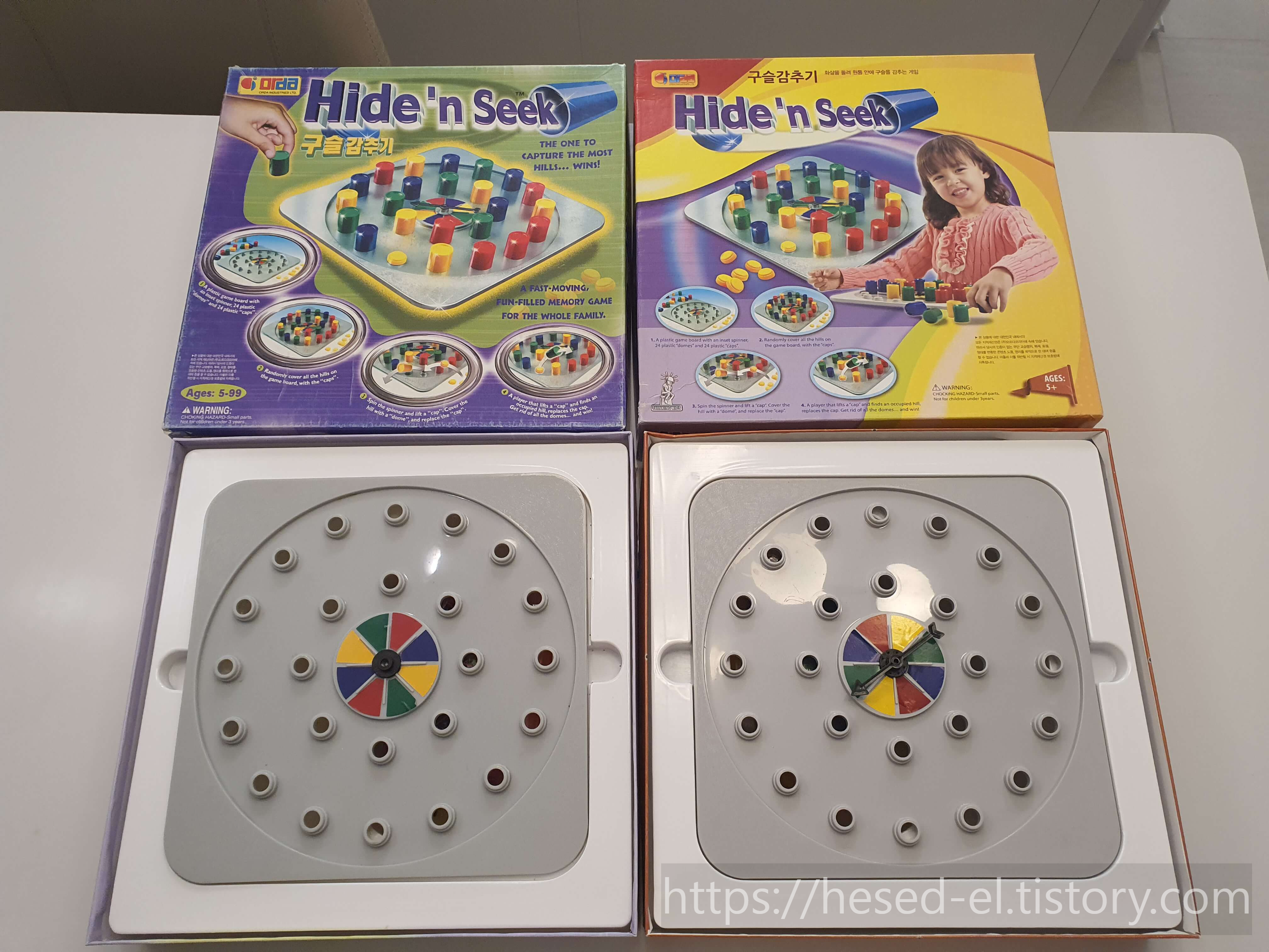 필자가 5세 아동과 단둘이 이 게임을 진행해 본 결과 각각 12개의 속 구슬을 숨기는 수업이 가능했다. 두 가지 방법으로 진행을 해봤는데 맨 처음 빈 통을 꽂을 때도 화살을 돌려 나온 색깔을 선택하여 스스로 꽂게 했다. 만일 화살을 돌렸는데 색깔판과 색깔판 사이 즉, 중앙선에 화살의 촉이 멈췄다면 다시 한번 화살을 돌려 색깔판에 멈출 수 있도록 기회를 준다. 아동은 자신이 숨긴 원통 색깔의 위치를 기억하고 교사는 숨긴 원통의 색깔과 개수를 함께 볼 수 있도록 종이에 적어두도록 한다. 필자의 경우 속 구슬을 숨겨둔 원통의 색깔을 각각 바를 正 자로 기재해 두었다. 이렇게 메모를 해두면 게임을 진행하면서 빈 곳과 개수를 파악하기 훨씬 수월하다. 또한 게임의 재미를 더하기 위해 한 번의 도움을 주는 필자의 방법인데 아동이 속 구슬을 어디에 숨겼는지 전혀 기억이 안 날 때, 힌트를 간절히 원할 경우 원통을 달그락달그락 소리가 나도록 흔들어보는 '쉐이크 찬스'를 한 번 허용해 준다. 이 행동은 원통을 들춰내지 않고도 소리만으로 유추하여 원통 안에 속 구슬이 있는지 없는지 판단해 보는 역할을 한다. 필자가 즐기는 방법 2가지를 영상으로 공유한다. 이 외에도 다양한 방법으로 응용하여 게임을 즐겨보기를 바란다.
