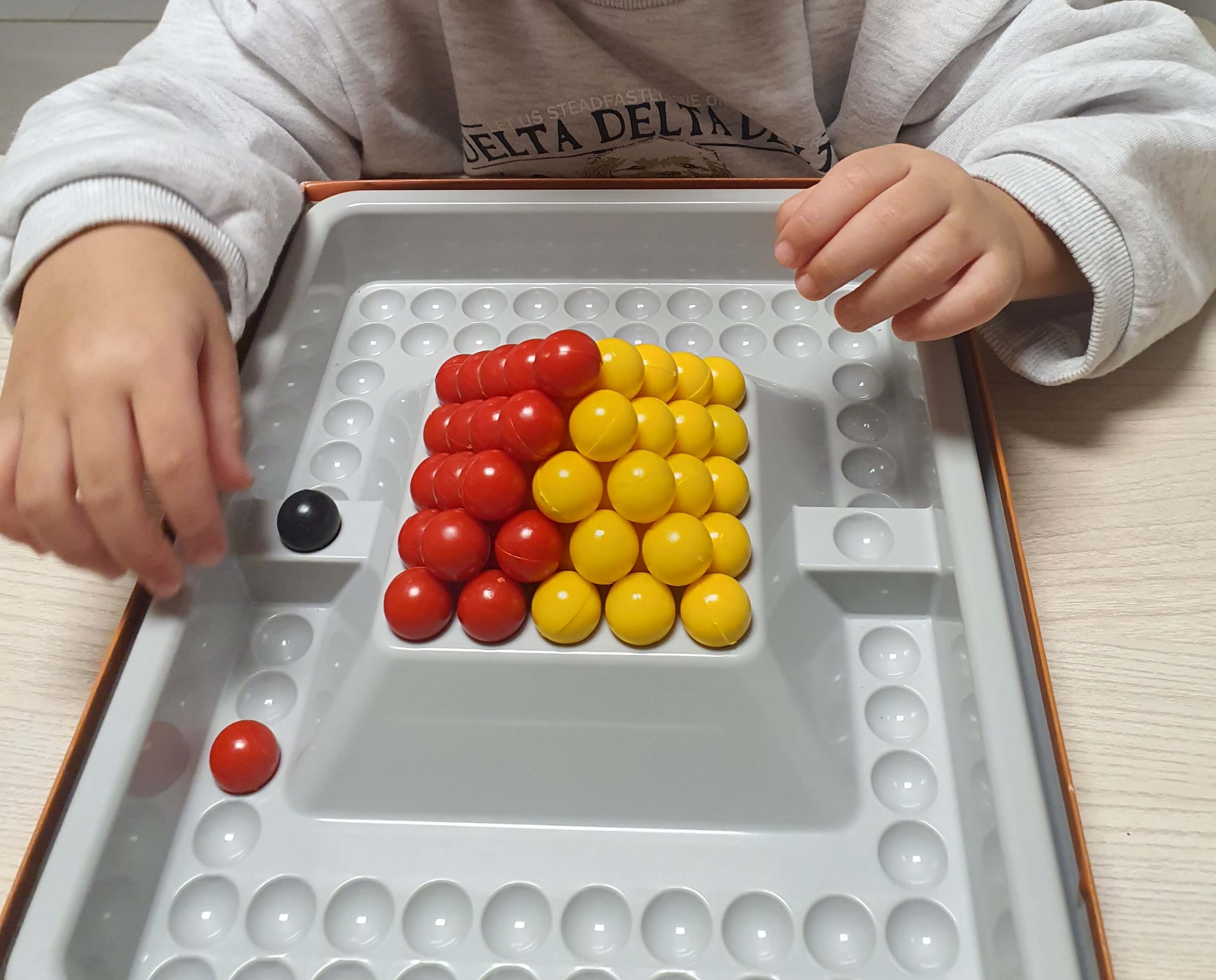 활동 목표: 간단한 규칙에 따라 피라미드식으로 구슬을 쌓는 게임을 통해 문제해결력과 전략적 사고력이 향상된다.