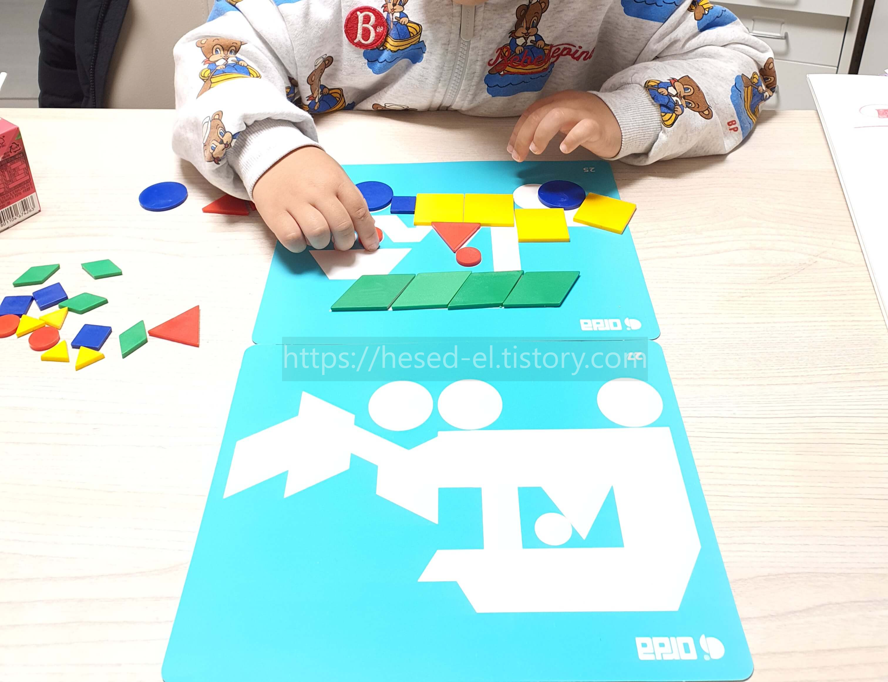 놀이 자료: 도형 조각 32개, 활동카드 18장